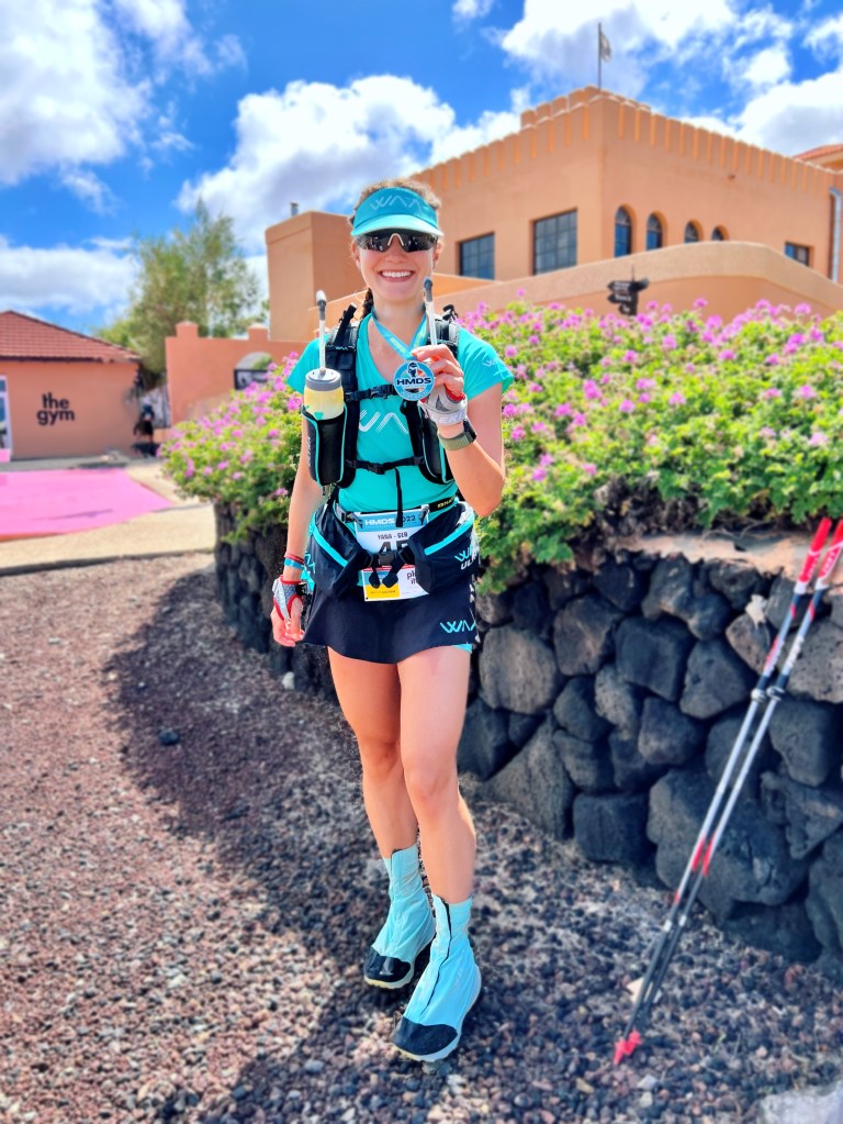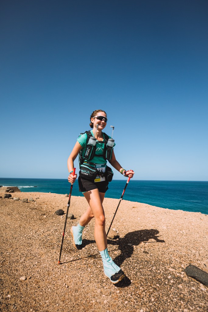 Stage 2 was basically an “uphill quickie” and a home run at the same time: 13 kilometers with 600 m of elevation, with the start and finish in front of the hotel. The first two Kilometers were along the beach on the black sand before starting the technical and steep ascents and descents of the surrounding mountains. I just love those technical and narrow single trails, combined with a bit of climbing, stunning views, and lots of concentration to not fall off the cliff. I was totally in my zone and passed by many other girls on the downhill and last stretch along the beach to the finish line.