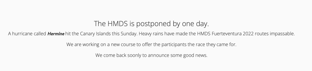 Good news: the race is not canceled and the storm warnings will be down on Tuesday (the race usually would have started on Monday) However, this means a totally new edition of the HMDS Fuerteventura 2022, because the original course got flooded and became impassable! Also, there won’t be a bivouac due to the wet, muddy and flooded ground. Of course, I felt a bit down as I was so excited about the whole “self-sufficient experience” with the camping, cooking, and no shower for four days. But I was also relieved that the race is not canceled completely. Now, I called it the “luxury” version as we could sleep in our comfy hotel bed and have running water.